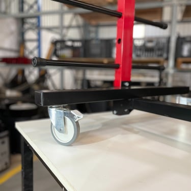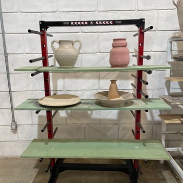 A prateleira do ceramista consegue facilmente alterar os níveis entre as prateleiras conforme as alturas das peças que está produzindo no momento.